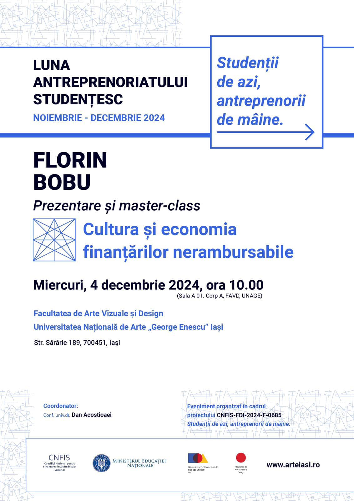 „Cultura și economia finanțărilor nerambursabile” - prezentare și master-class cu Florin Bobu